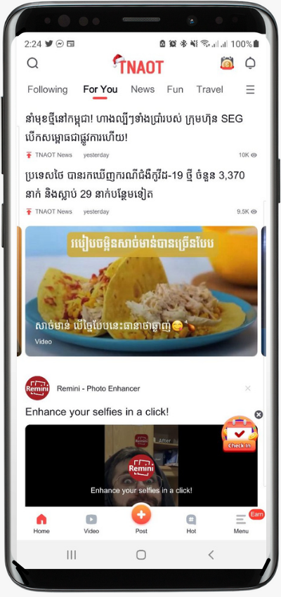 TNAOT APP is a personalized news aggregator and also the first localized We-media platform supported by AI technology that organizes and highlights what’s happening in Cambodia. So you can discover more about the stories that matter to you.